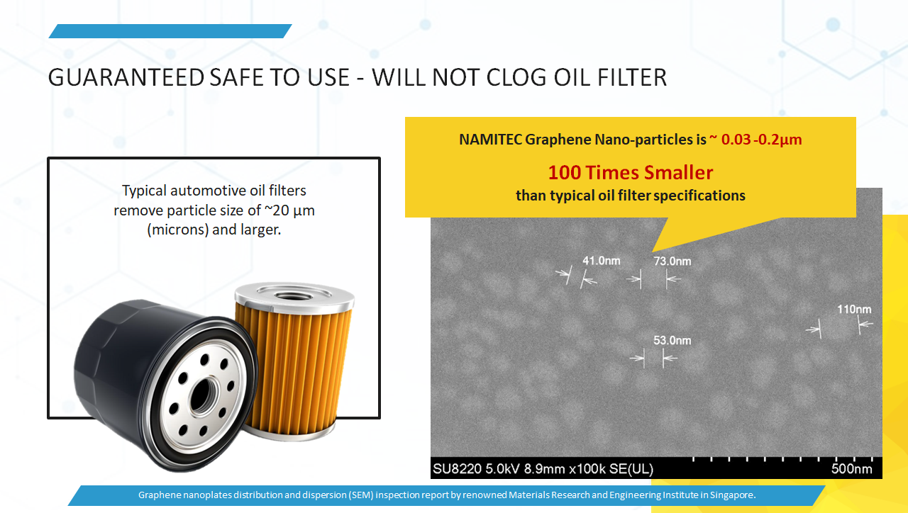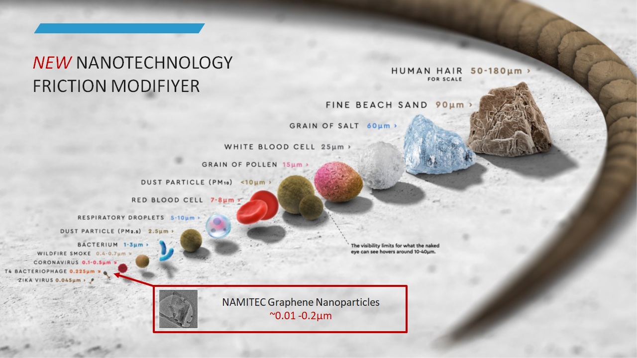 - NAMITEC engine oil additive is formulated with high-purity graphene from a reputable source in Singapore. It is suitable for all gasoline and diesel engines, as well as machinery and tools.
